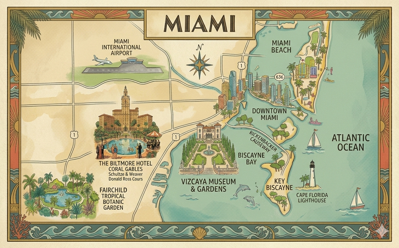 busy time in Miami. The Miami International Airport is the closest airport, with taxis and